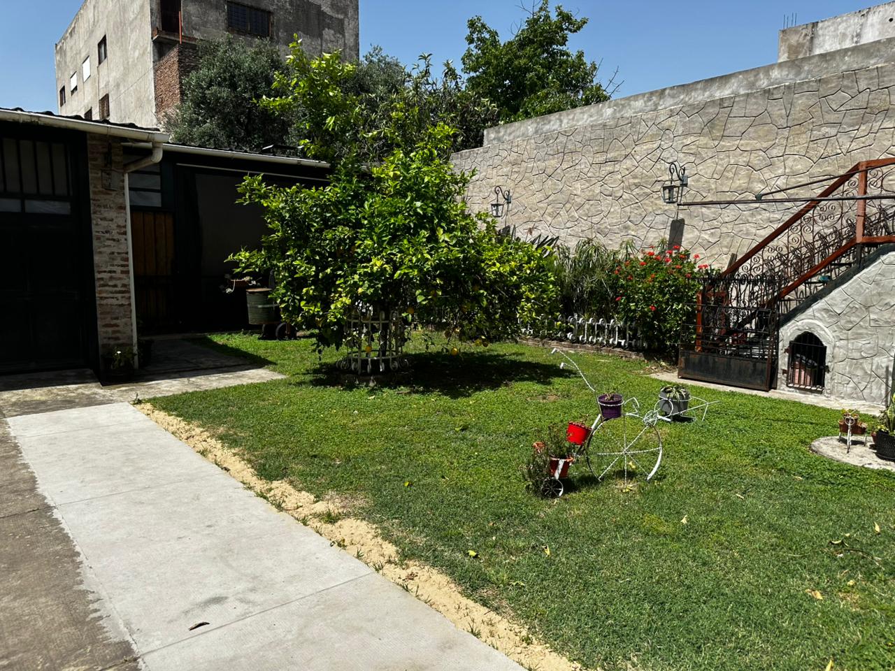 Casa sobre lote 10x35 est., consta de patio al frente con entrada para vehículos, hall de entrada, dos dormitorios, cocina-comedor, fondo libre, cuarto guarda útiles, cochera, quincho c/ baño y parrilla, terraza accesible.