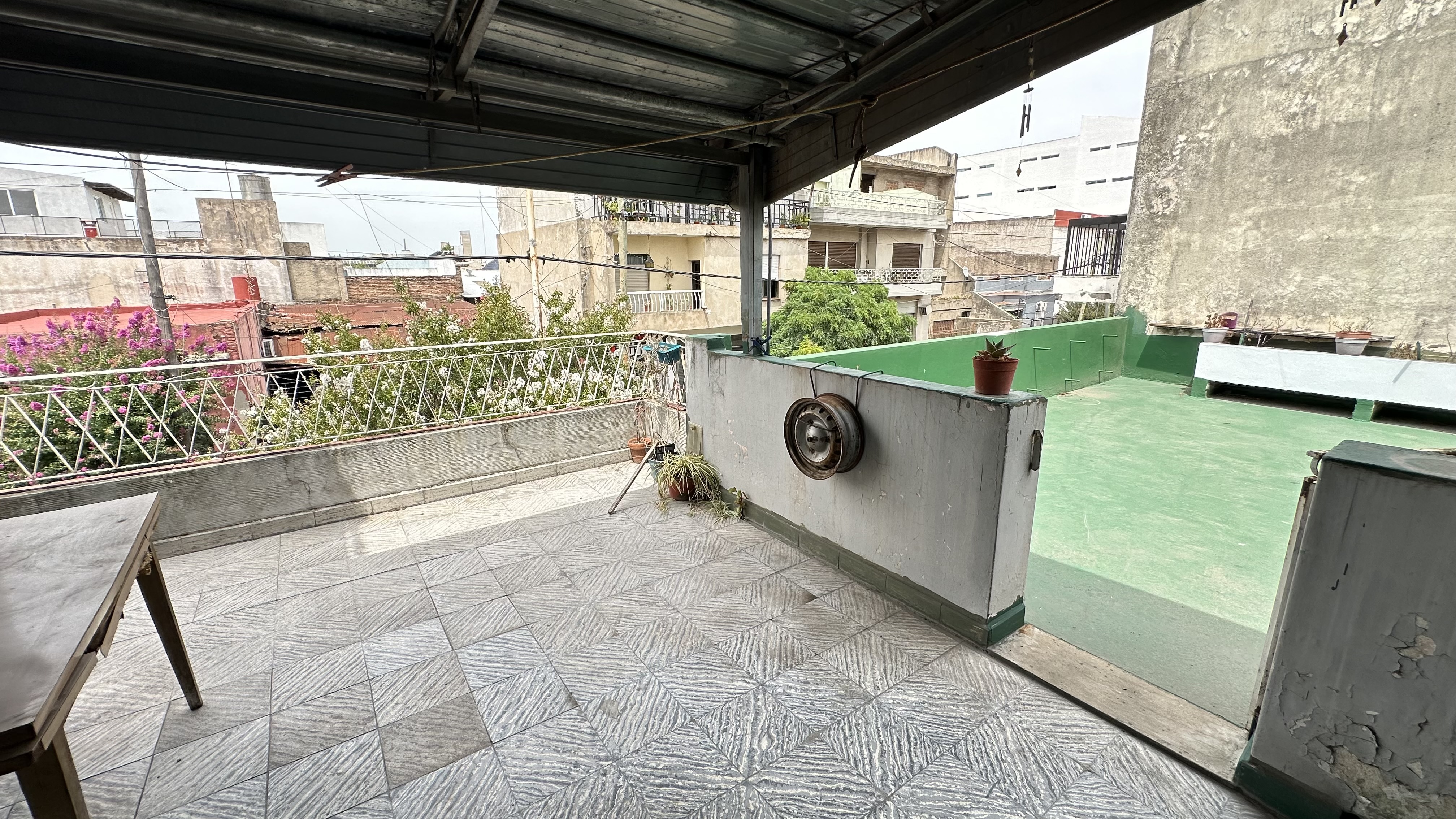Departamento primer piso por escaleras, que consta de un hall de entrada, un baño, dos habitaciones, una cocina-comedor, un balcón, un patio c/ parrilla y una terraza accesible c/ cuarto guarda útiles.